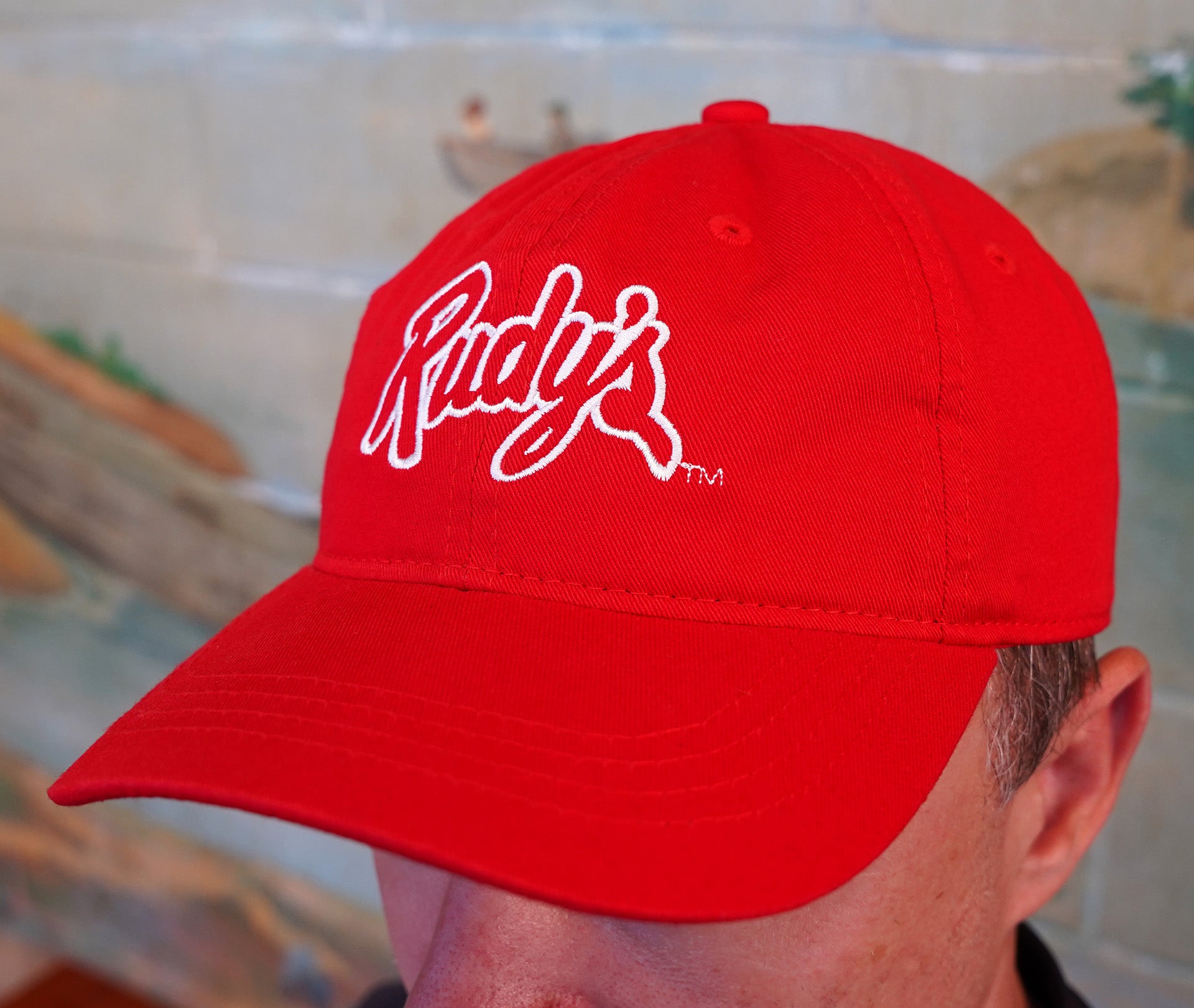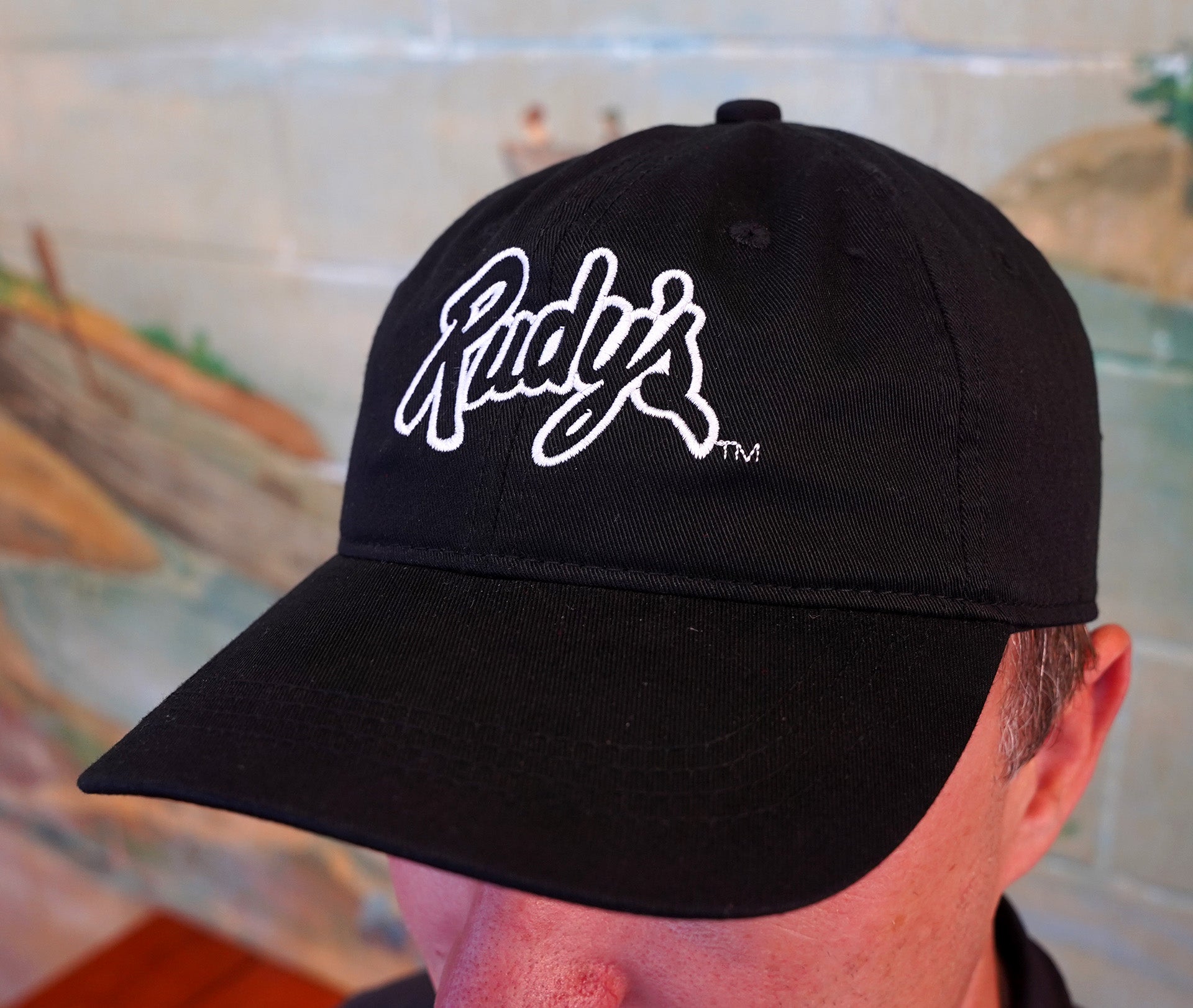 Top off your look with the Rudy’s classic Cook Hat. Comfortable, adjustable ball cap featuring the iconic Rudy’s logo embroidered on the front. Available in red or black.